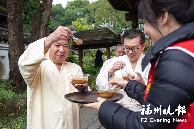 25日上午,第五届“百姓汤 幸福泉温暖在榕城”拗九节志愿活动举行,主会场设在鼓楼区源脉温泉园。老人们现场看表演、喝拗九粥、品温泉美食,热热闹闹过拗九。