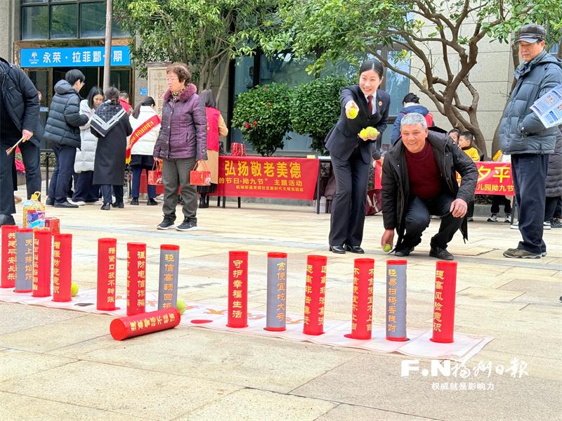 26日上午,一场通过游戏进行普法的爱老敬老活动在长乐区航城街道荣辉社区开展,吸引周边不少老年人前来品甜粥、学法律。