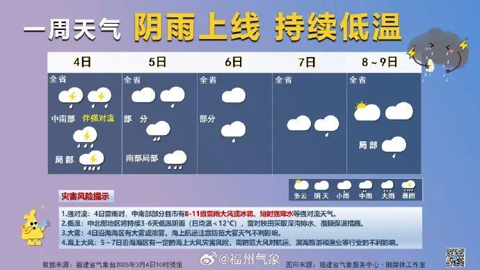 2025年3月4日12时22分,福州市气象台发布雷电黄色预警信号。