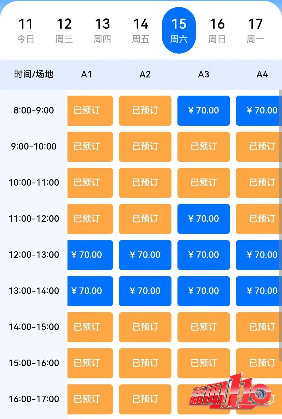 记者随手打开附近一家羽毛球馆的小程序,发现本周六的场次都即将约满。