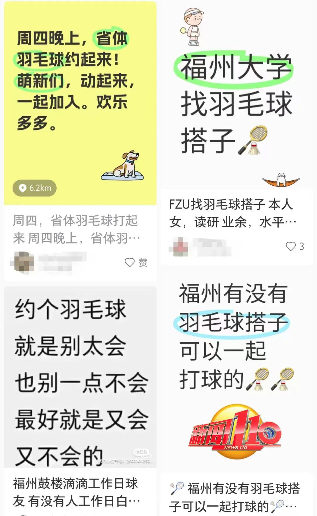 羽毛球运动也同样受欢迎。在社交平台上,可以看到不少寻找羽毛球搭子的帖子。