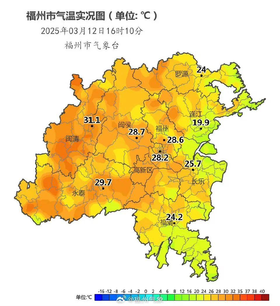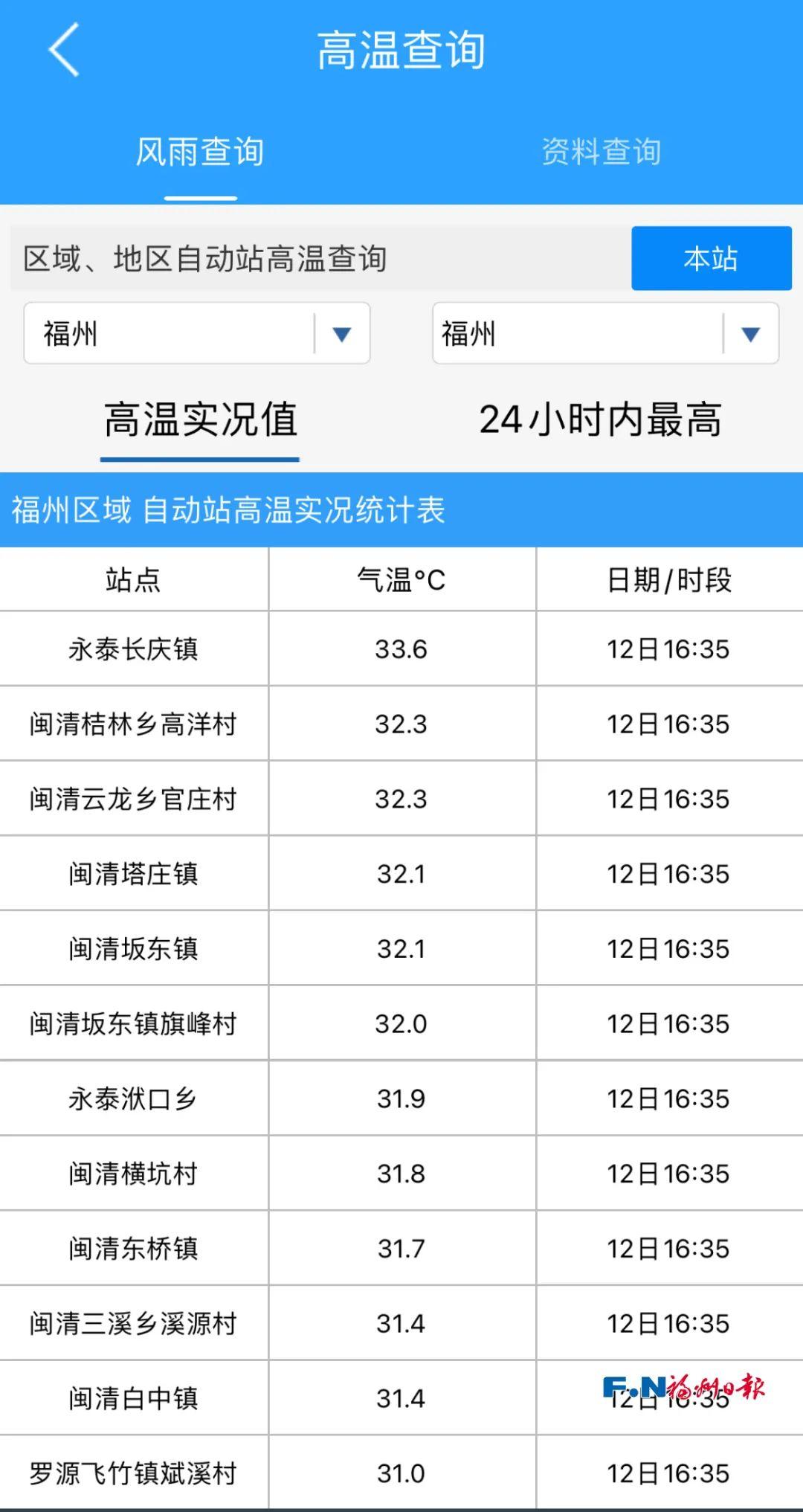 热!热!热!12日下午,福州多个气象站点气温实况值突破30℃,其中,永泰长庆镇33.6℃为最高。
