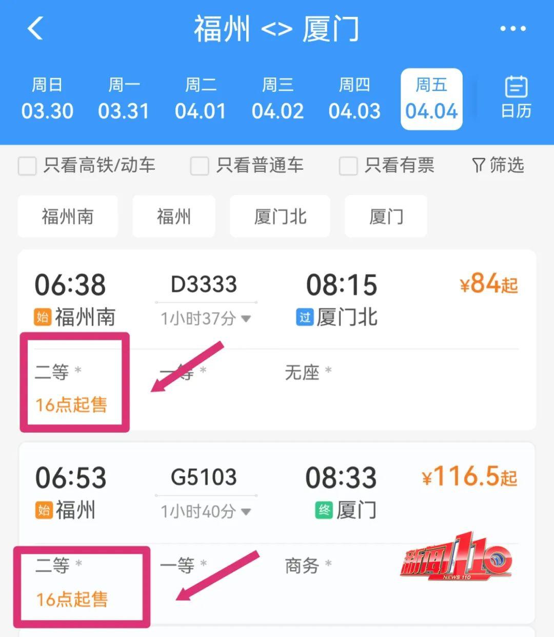 不同火车站车票网上起售时间并不相同,据悉,4月4日当天的车票,福州站和福州南站的起售时间均为今日16时。