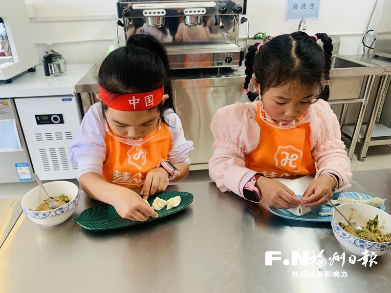 小朋友学着包馄饨。(市妇联供图)