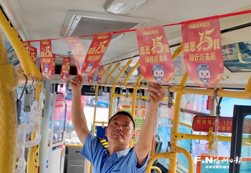 328路公交迎周年庆,车厢披上新装。(闽运福州公交供图)