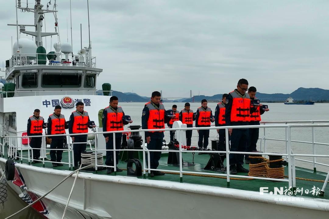 海警执法员默哀缅怀先烈。(受访方供图)