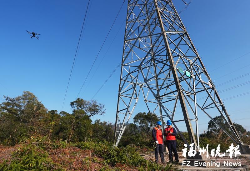 在马尾区马尾镇龙门村,输电运维人员运用无人机巡视线路。