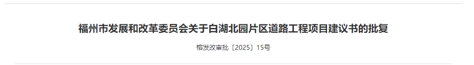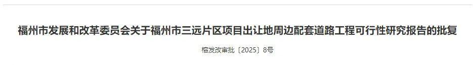 近期,福州市三远片区项目出让地周边配套道路工程可行性研究报告也获批。