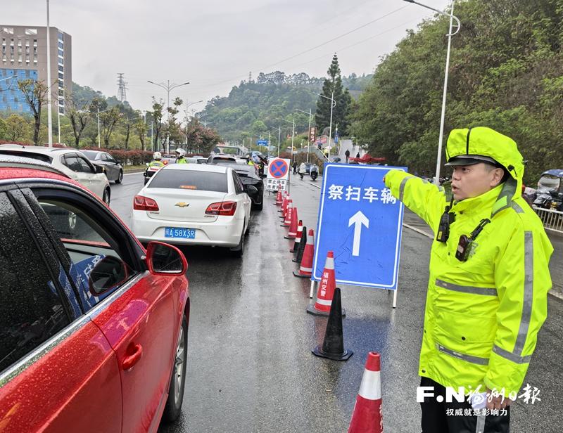 5日9时30分,妙峰山陵园入口处车辆络绎不绝,“禁止停车”“祭扫车辆直行”等蓝底白字大型指示牌十分醒目。蒙蒙细雨中,福州交警仓山大队金山中队指导员潘吴宏和民辅警,面对停下来的一辆辆私家车,一遍遍地耐心引导和解释,“您好师傅,车子不能开上山,麻烦您把车停到前面指定地方”“停车点有公交接驳车,您可以坐车过来,很方便的”……