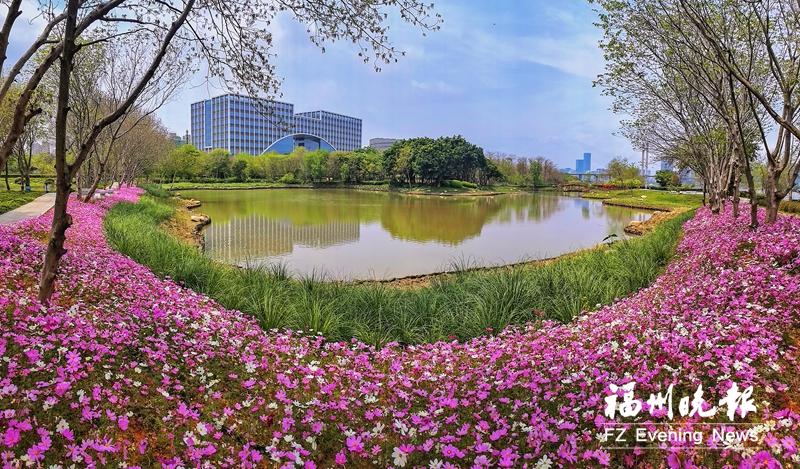 眼下,花海公园约2000平方米的波斯菊绽放,吸引众多市民前来赏花。