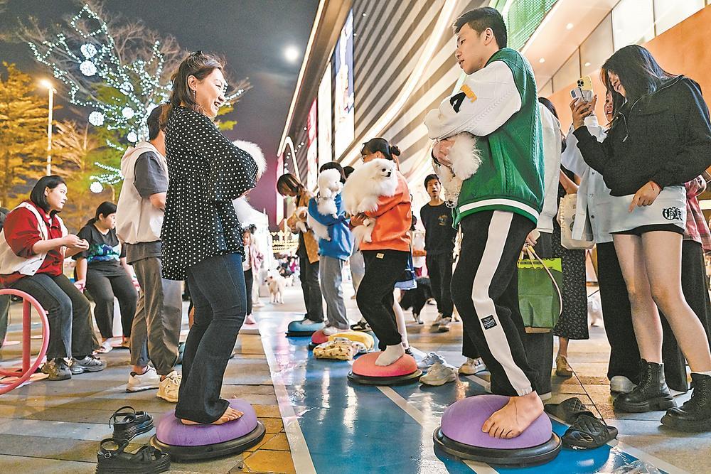 “遛宠,遛娃,遛自己。”4月11日至13日,作为福州市首个“宠物友好型街区”,福州苏宁广场开启“福州城市溜溜节”,宠物市集、毛孩子运动会、宠物交友会、萌宠光影展、领养日等丰富多彩的活动集齐各式宠物业态和商家,也吸引了众多“毛孩子家长”齐聚一堂,尽享“宠物社交”之乐。(记者 施辰静 摄影报道)