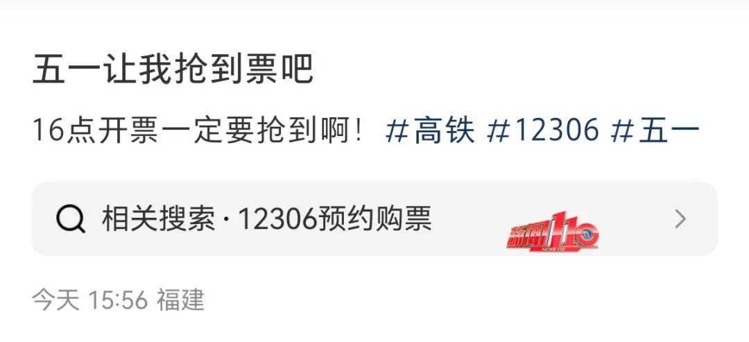 16日下午4:00,“五一”假期前一天福州前往各地的动车票开售!