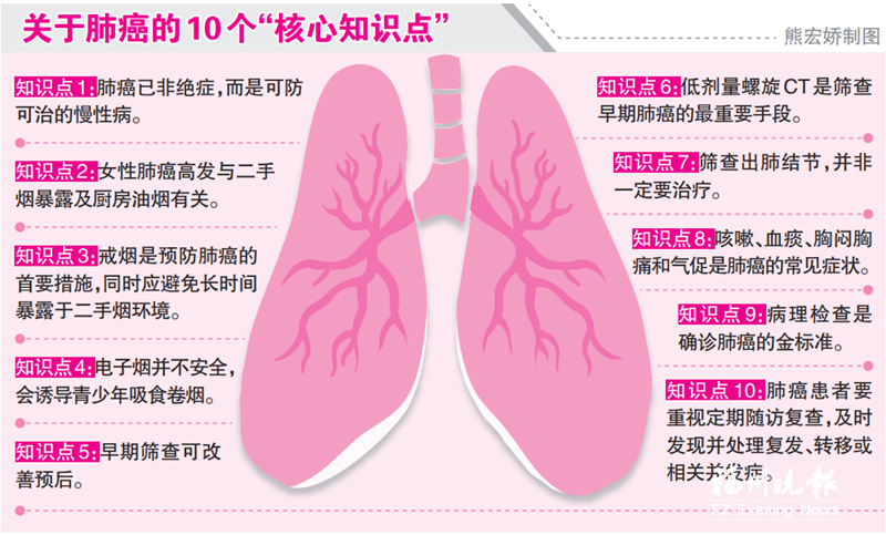 15日,福州市疾控中心(市卫监所)发布“肺癌的核心知识”,提醒关注这个长期“霸榜”全国恶性肿瘤发病和死亡首位的癌症。此外,对于肿瘤防治,福建省肿瘤医院专家提醒,早筛查是掐灭肿瘤“小火苗”的关键。