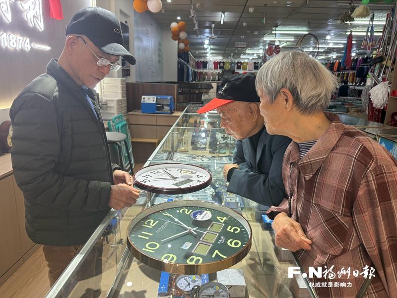 从报纸上得知亨得利钟表重新开业,一对老夫妻前来买时钟。记者 冯雪珠 摄