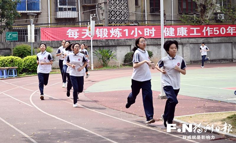 9日,福州十五中初三学生在训练。记者 叶诚 摄