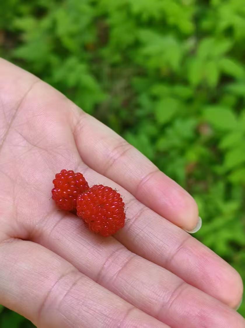 在屏山公园发现的蓬蘽果实,俗称“野草莓”