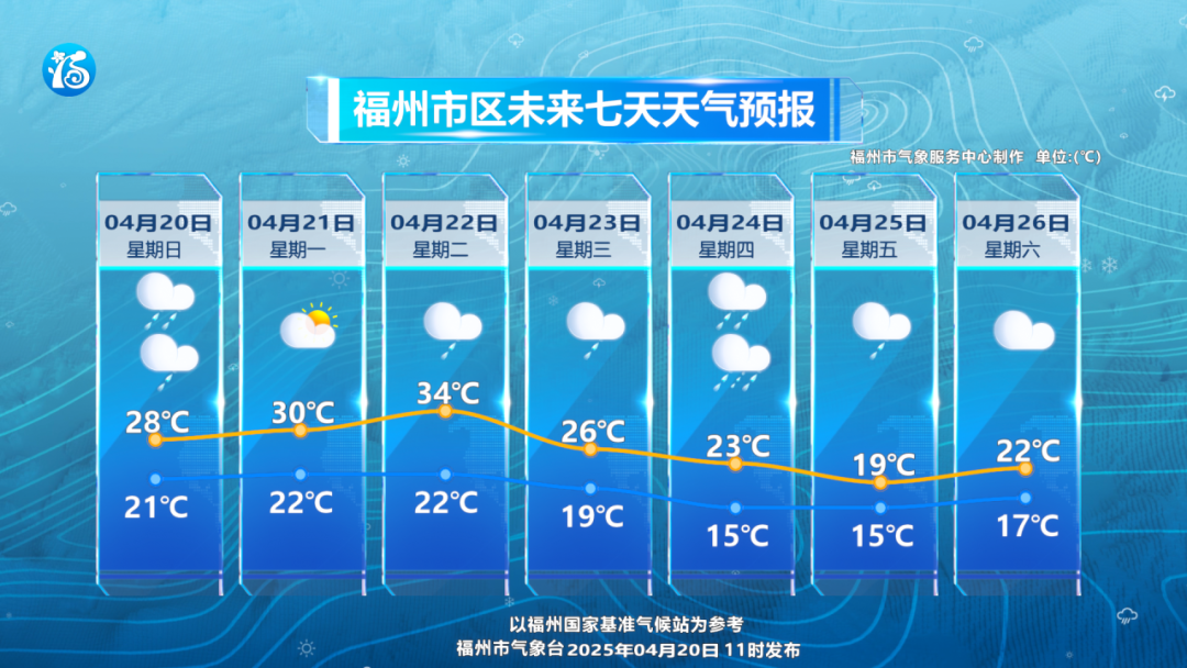 接下来几天,福州气温还会逐步升高,22日(周二)午后气温将冲上34℃,市民朋友需及时补水降温,避免午后时段在户外活动,谨防中暑。