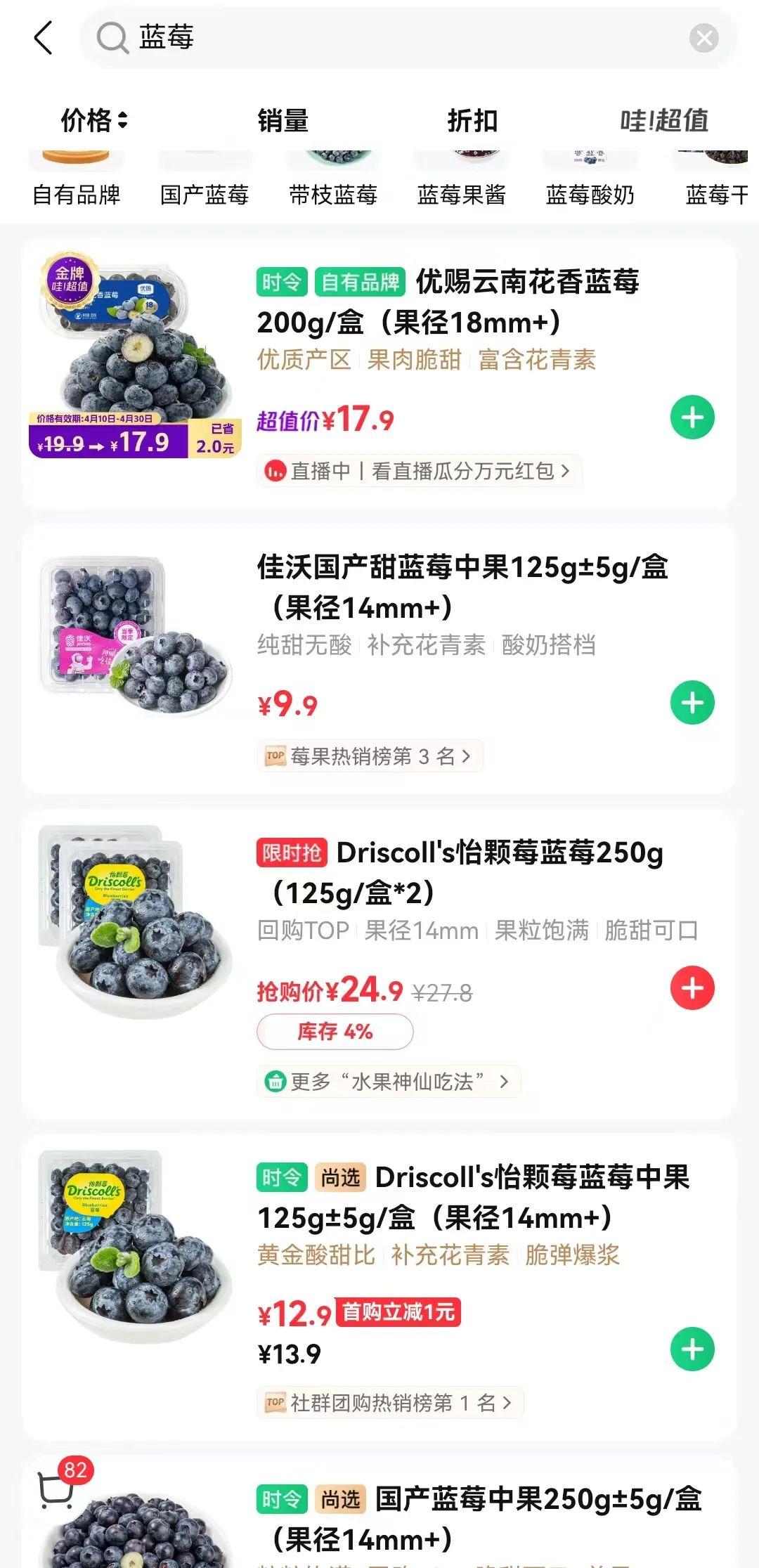 “前段时间蓝莓的价格已经跌很多了,我还买了不少。没想到现在又跌了。”在五四北的一家超市,市民邱女士看着铺满整个柜台的蓝莓,非常诧异。“这种规格的,年初来买还要40元/盒,一个多月前跌了近一半。现在只要9.9元/盒,真的太划算了。”而即使是店内规格18mm+的“怡颗莓”,零售价也只要15元/盒,比她3月份购买直接跌了10元/盒,与以往50~60元/盒的价格不可同日而语。