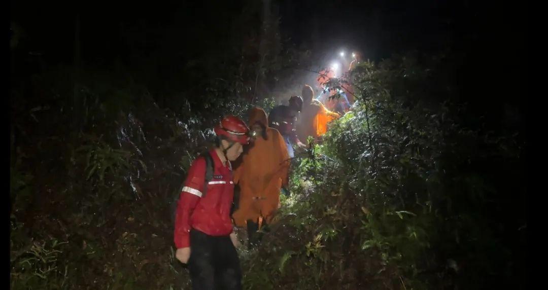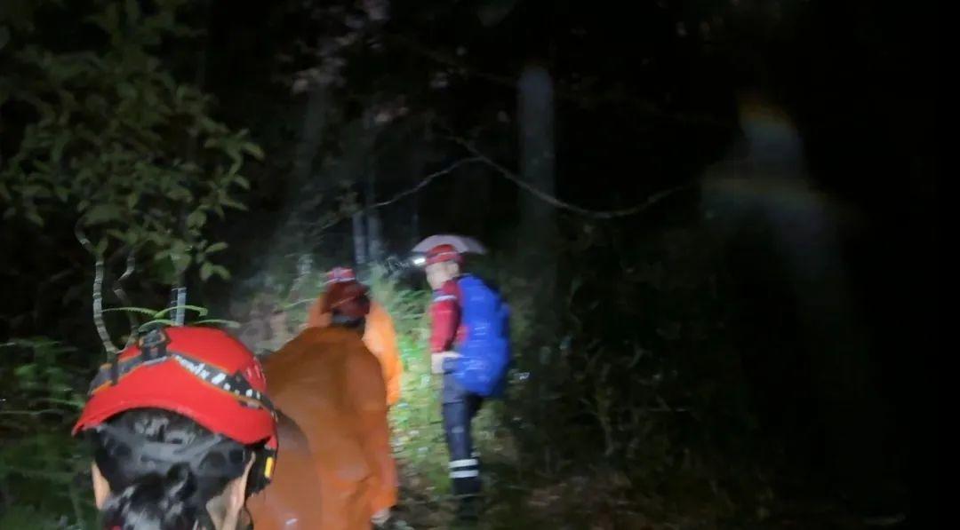 暴雨中,陡峭的山路变得更加湿滑,沿途的藤蔓倒刺,泥泞水潭……给搜救工作增加了不少难度。救援人员依靠手电的微光,在漆黑山林中摸索前进。