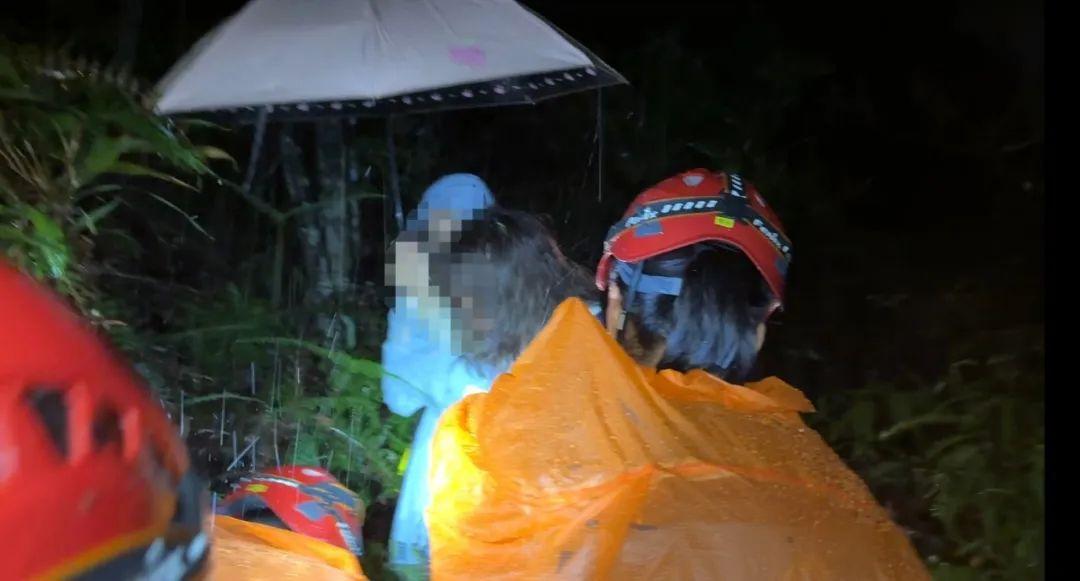 2个小时左右,搜救队员终于找到了两名女生。经过初步检查,两名被困者除了体力有点透支,身体其他方面并无大碍。队员为两名女子提供雨衣后,一路护送两名被困女子缓慢回撤。