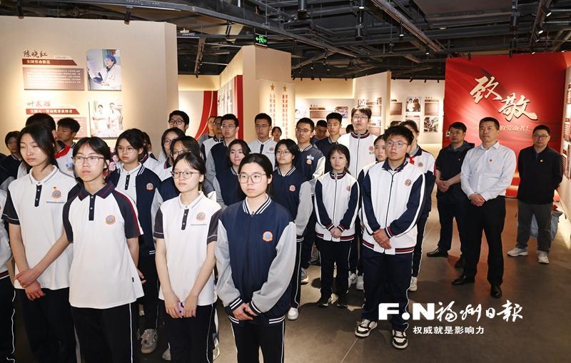 4月13日,闽江学院附属中学组织优秀学生干部,前往市劳模精神展示馆开展“行见福州”思政研学活动。记者 叶诚 摄