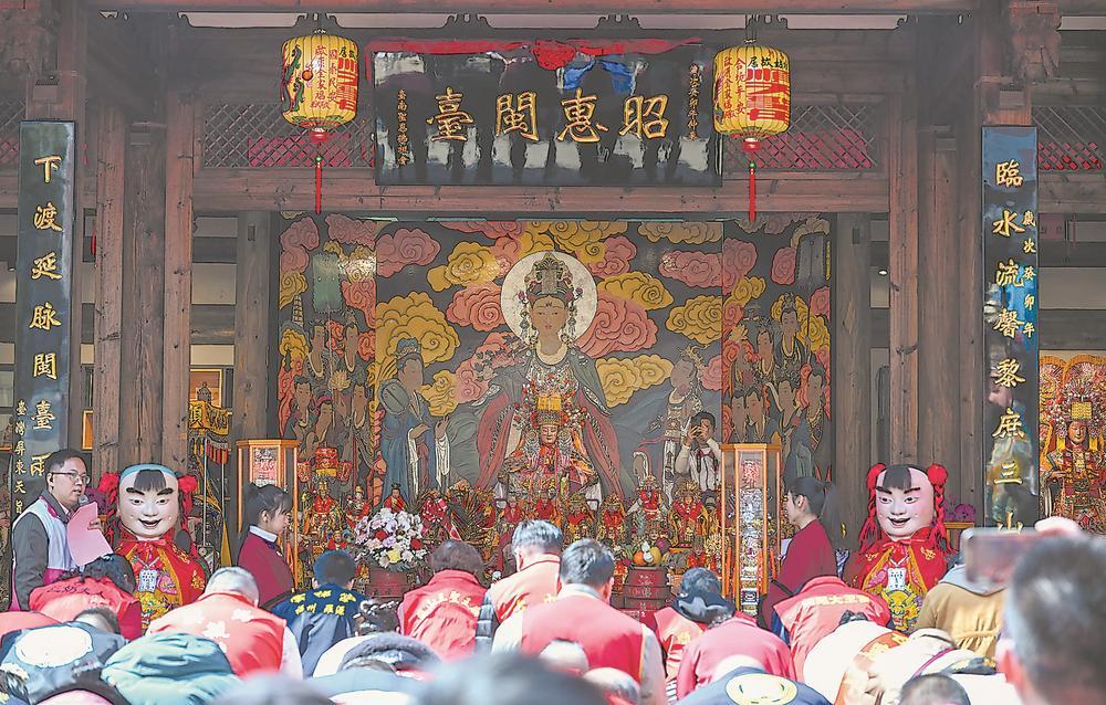 福州市仓山区的陈靖姑故居每年举行天下奶娘回娘家活动。图为两岸陈靖姑信众参加祭典活动。记者 游庆辉 摄