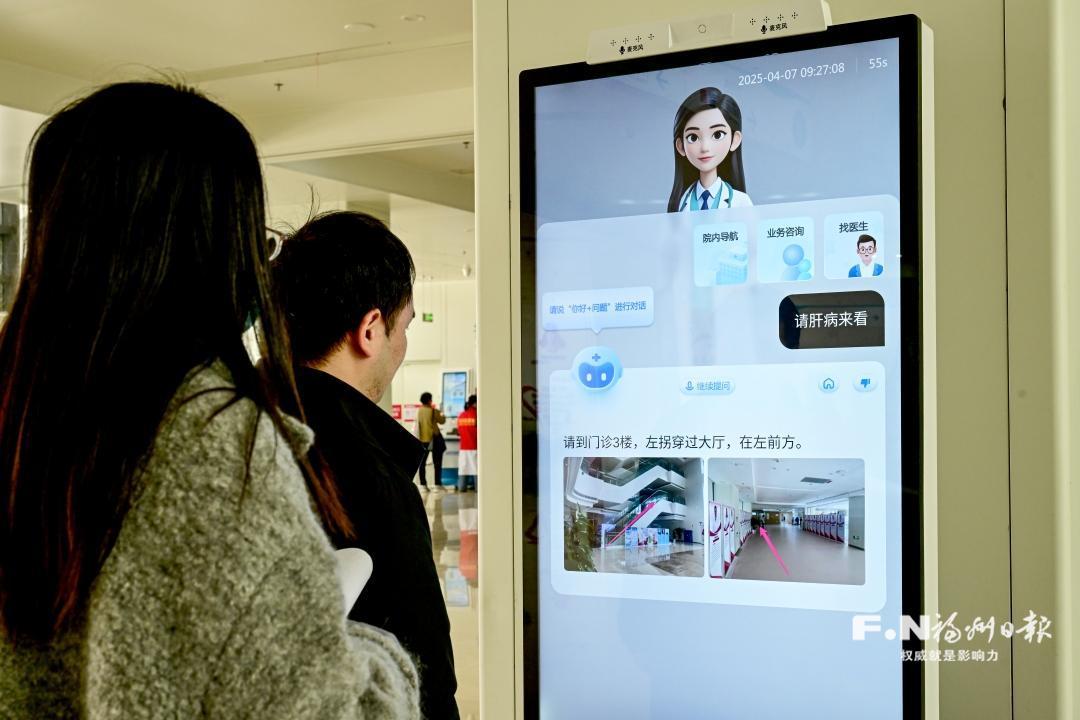 福建医科大学孟超肝胆医院门诊大厅,一块“上岗”不久的大屏吸引了市民黄宝珠的目光。在工作人员的指导下,她根据屏幕提示打开AI导诊数字人界面,对着“小觅AI患者助理”输入自己的疑问:“你好,我上腹部不舒服有一个月了,食欲也不好,要挂哪个科?今天哪些医生可以看诊?这是第一次到你们医院,对医院环境不熟悉,怎么办……”