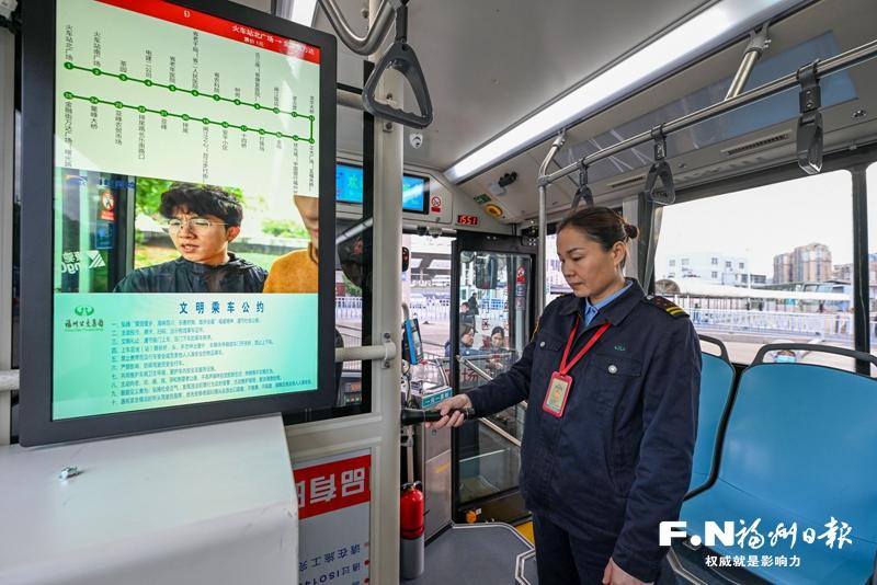 福州公交集团驾驶员根据智能巡检系统要求,进行发车前检查。