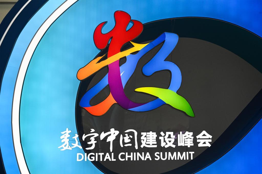 这是4月28日在第八届数字中国建设峰会现场体验区拍摄的会标。新华社记者 周义 摄
