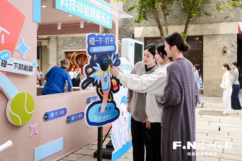 此外,上下杭街区开展“科技体验周·碰一下精彩上下杭”系列活动,将“碰一下”创新科技与街区的历史文化特色融合。市民和游客不仅能参与市商务局联合支付宝启动的“惠聚榕城·碰见福州·碰一下消费节”,享受支付优惠,还能唤起福小厝文旅智能体,体验AI伴游及景点讲解,让游玩更加轻松愉悦。