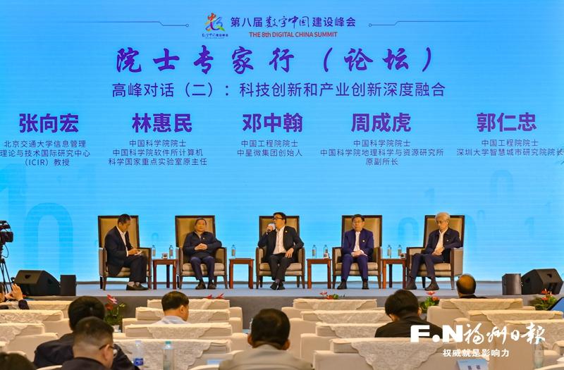 以“科技创新和产业创新深度融合”为主题,8位院士专家登台展开高端对话,共同探讨数字经济的演变趋势、发展方向、融合路径。