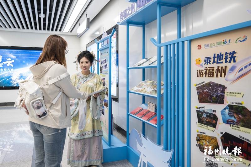 值得一提的是,4月28日至5月5日,福州开展地铁、公交免费乘车活动。福州市文旅局联合福州地铁集团,专门为游客定制了一份“五一”乘地铁游福州打卡攻略,并在福州文旅加油站宣传推介,为游客出行提供实用的参考指南。(记者 马丽清/文 林双伟/摄)