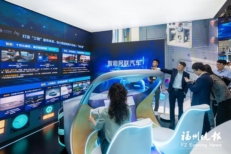 市民争相体验中国移动展区的智能网联车。