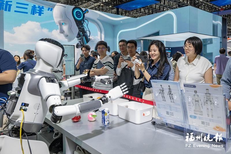 中国移动展区的各类机器人吸引了大批市民的目光。