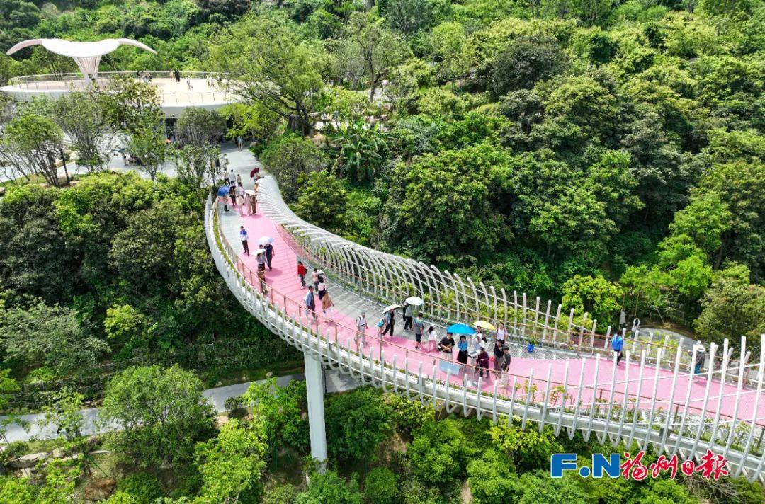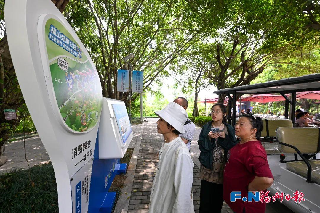 福山郊野公园里,众多游客纷纷来体验园内独具特色的智能科技。