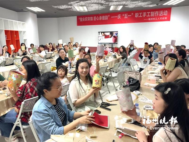 3日,福州市工人文化宫组织开展2场“指尖织宋锦 匠心承雅韵”——庆“五一”职工手工制作活动,百名职工体验宋锦古老制作技艺。(记者 关志杰 通讯员 赵烨馨 摄影报道)
