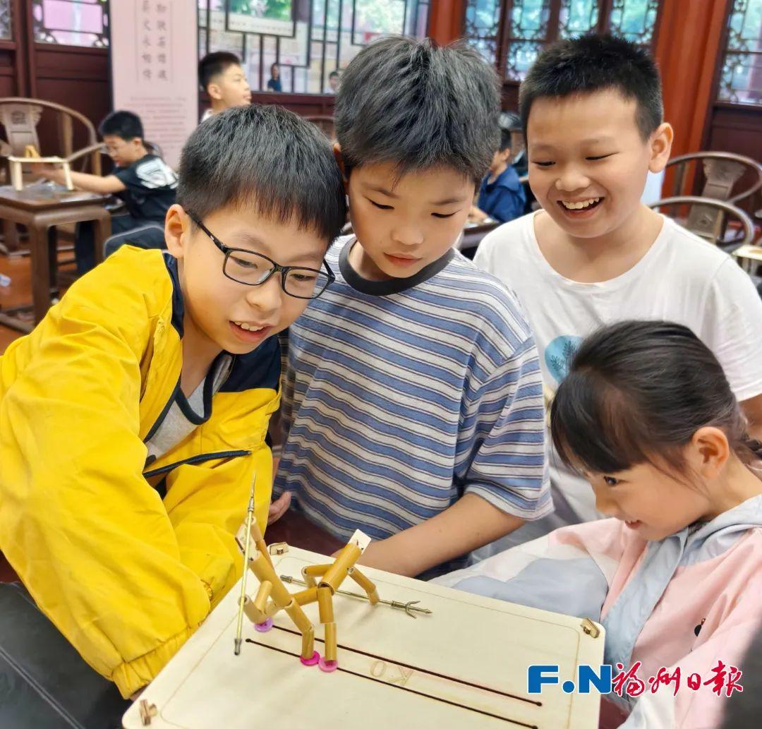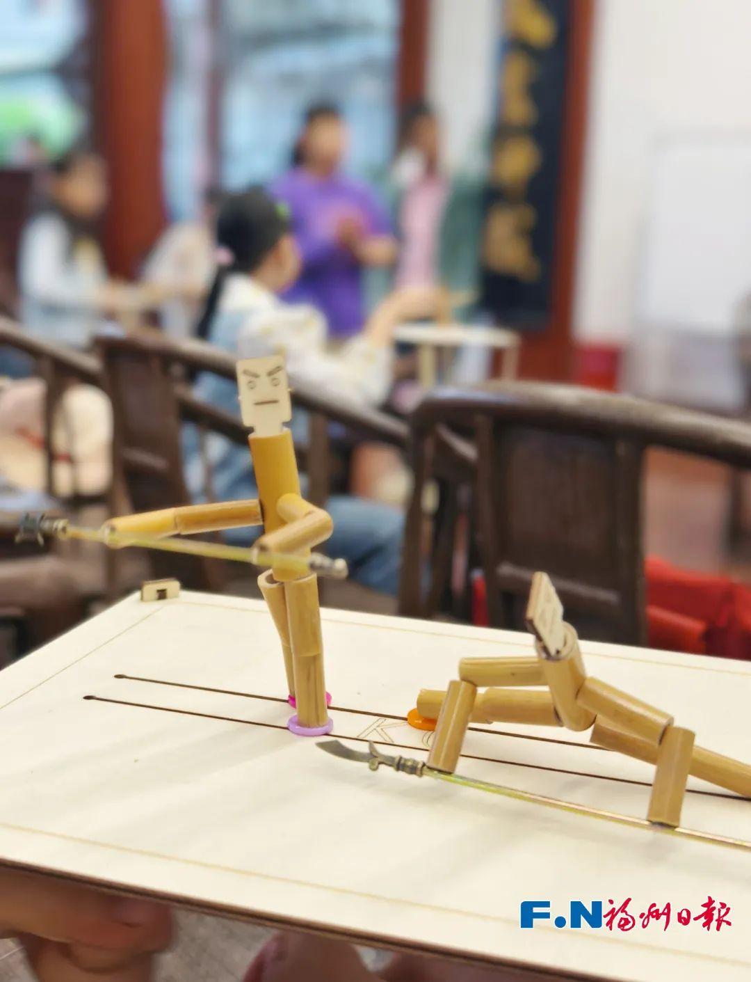 在福州马江海战纪念馆,“战旗永扬 未来有我”“五一”文化盛宴举行,其中非遗手工体验的主题是“竹人舞梦·非遗童行”。孩子们在非遗老师指导下,学习传统竹节人制作技艺,用竹节、棉线组装灵动小人并参与趣味擂台赛。