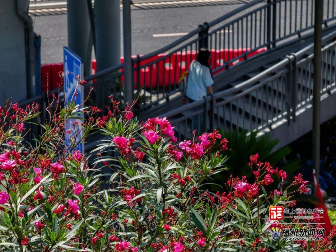 近日,许多夹竹桃开满枝头,绿油油的叶片下,或玫红、或雪白的花朵明媚动人,不少休闲或锻炼的市民路过会特意停下脚步,赏花拍照。