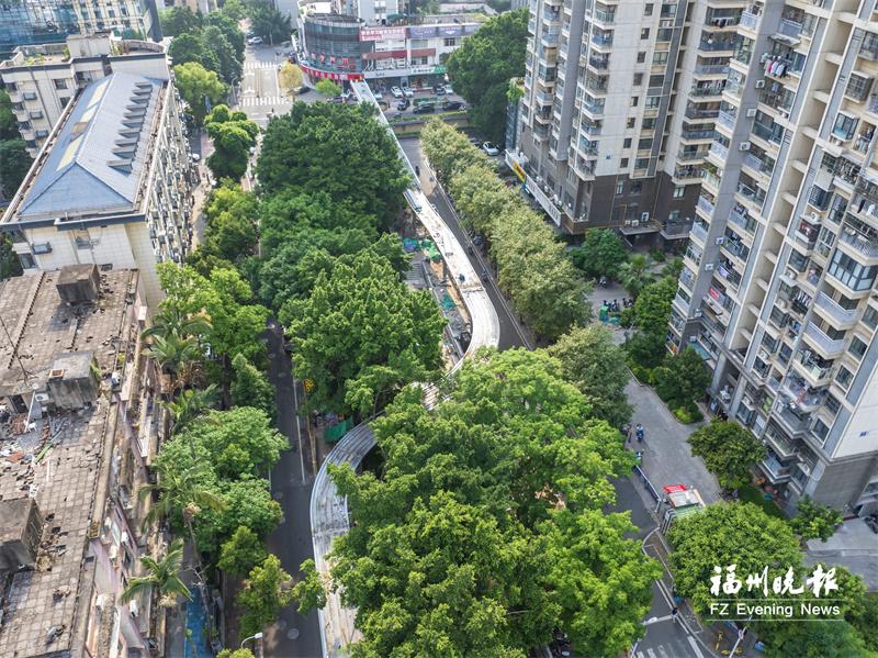 目前,五四路至湖东路段步道沿线集结了温泉公园、五四河、琼东河、百福桥等节点,市民可以去温泉公园休闲,沿着步道赏榕城水韵,也可在百福桥看繁华城市夜景。新建段通行后,市民和游客可从百福桥继续沿着高空景观步道往观风亭街方向漫步,领略榕城街巷的烟火魅力,感受河道之上、榕荫之间的生态福州别样诗情画意。