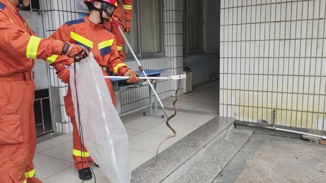 连江消防第一时间派出一车六人的专业救援队伍,携带齐全的捕蛇装备,赶赴现场。