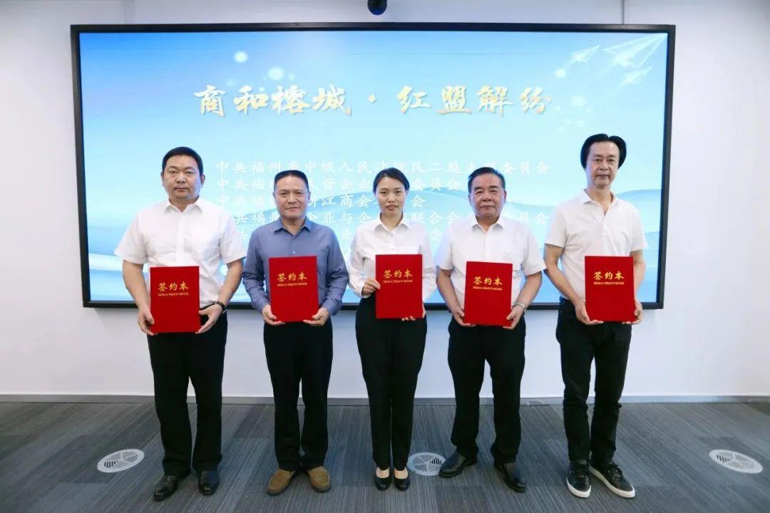 福州市企联党支部等4家单位党组织共同与福州中院民二庭党支部签订《党建共建协议》,正式启动“商和榕城・红盟解纷”党建品牌建设。双方将以“组织共促、队伍共育、资源共享、发展共赢”为目标,通过联合开展主题党日、法律培训、风险研判等活动,推动党建工作与涉企司法服务深度融合。福州市企联将借助党建共建平台,进一步强化对会员企业的法治引导,把党的政治优势、组织优势转化为服务企业发展的实际效能,为法治化营商环境引领建设提供坚强政治保障。