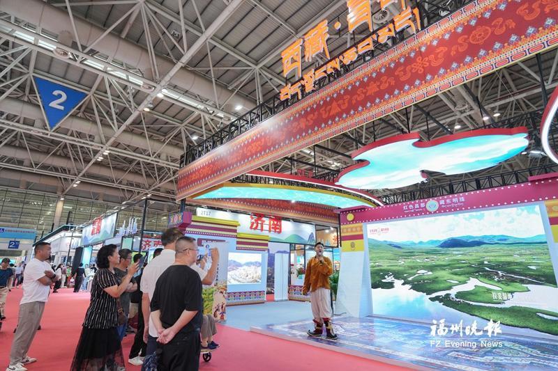“呦!呦呦!这是我们传统的锅庄舞,大家一起跳起来呀!”昨日上午,海峡国际会展中心2号馆内,伴随着热闹的藏族舞曲,身着藏族传统服饰的工作人员跳起欢快的锅庄舞,邀请现场观众加入其中。观众们纷纷拿出手机拍摄视频。