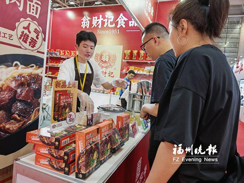 提起翁财记,很多人还停留在坚果炒货品牌的传统印象上。21日,在海交会现场,翁财记工作人员庄永桂介绍,近年来,翁财记正通过转型升级,积极在传统业务领域之外开拓新空间。目前,翁财记已推出卤蛋等系列食品,台式红烧牛肉面则是最新研发的产品,海交会是其首次亮相。