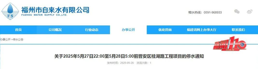 关于2025年5月27日22:00至5月28日5:00前晋安区桂湖路工程项目的停水通知