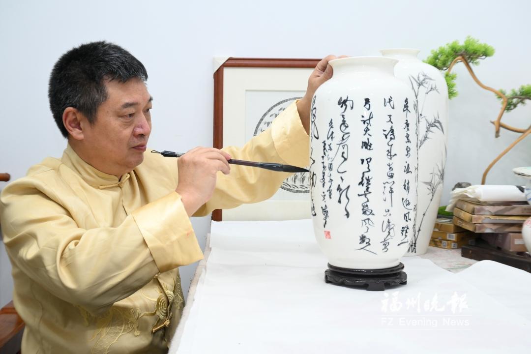 吴德才的书画作品多次在中国文联、中国书协、中国美协、西泠印社主办的国际、国内大展中获奖展出;作品入编《中国当代实力派书画代表作典库》《盛世双璧》等书籍;多件作品被国内外文博单位收藏。(记者 关志杰/文 叶诚/摄)