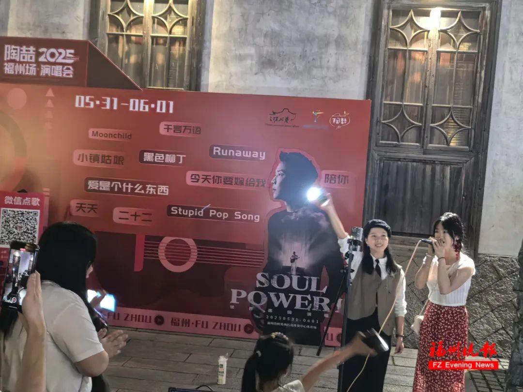 《今天你要嫁给我》《找自己》《爱我还是他》…………当熟悉音符穿透街巷青石板,来自全国各地的歌迷自发汇聚、齐声合唱,街头秒变演唱会现场,直接把话题“福州街头合唱陶喆”顶上热搜。