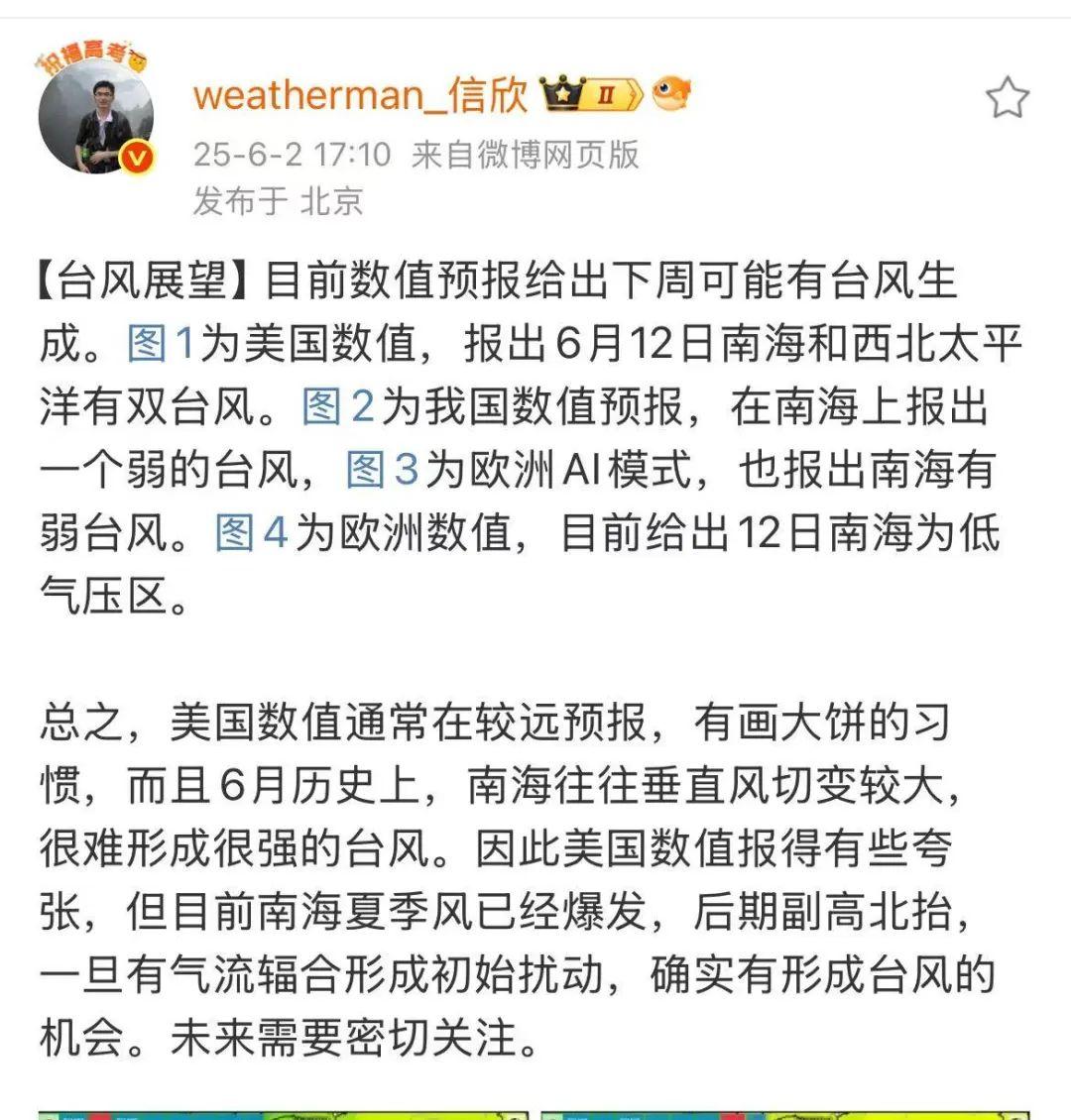 目前我国数值和美国数值继续给出后期南海上可能有台风生成,欧洲报暂未报出台风,但也给出南海上有季风低压活动。