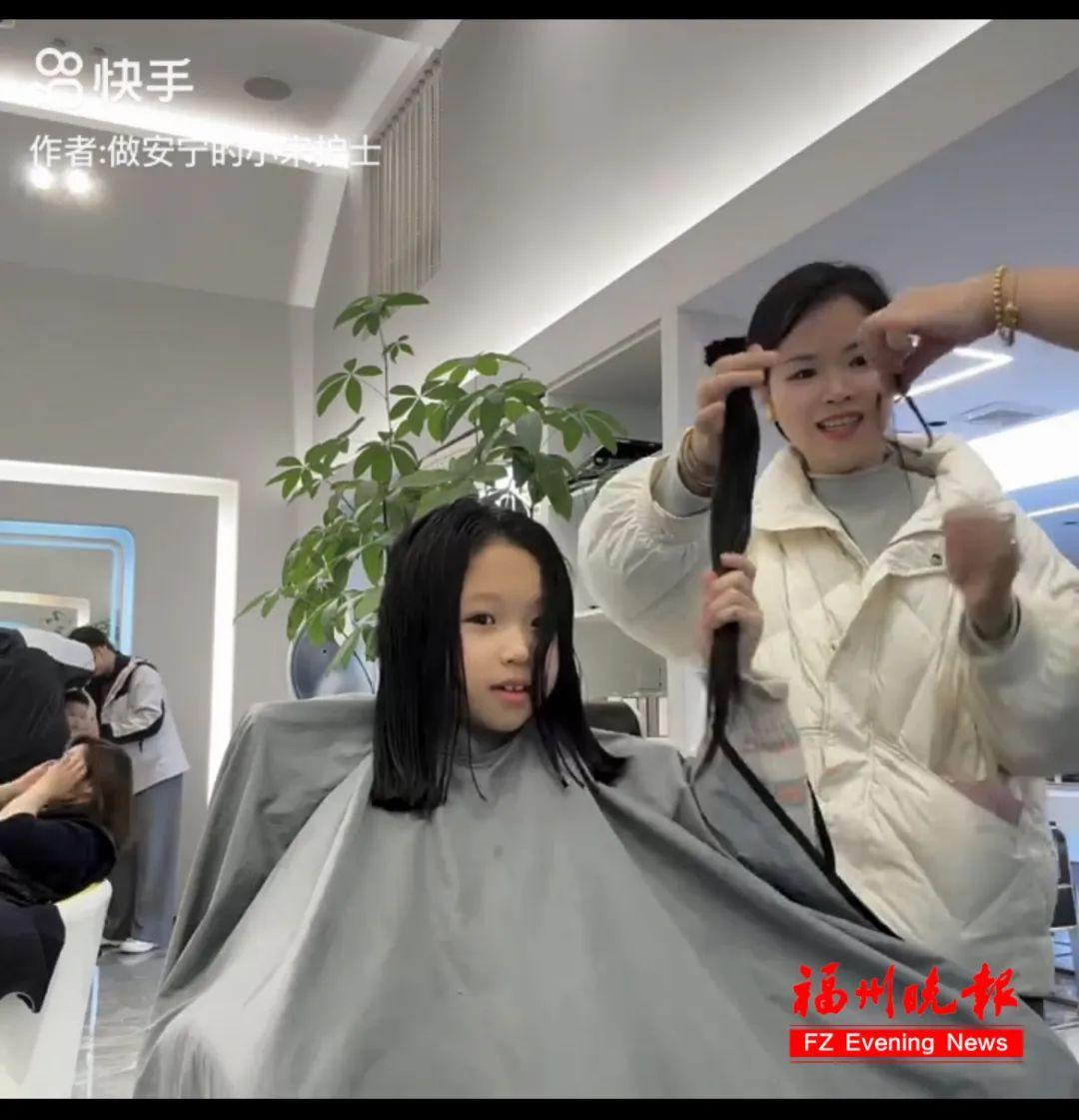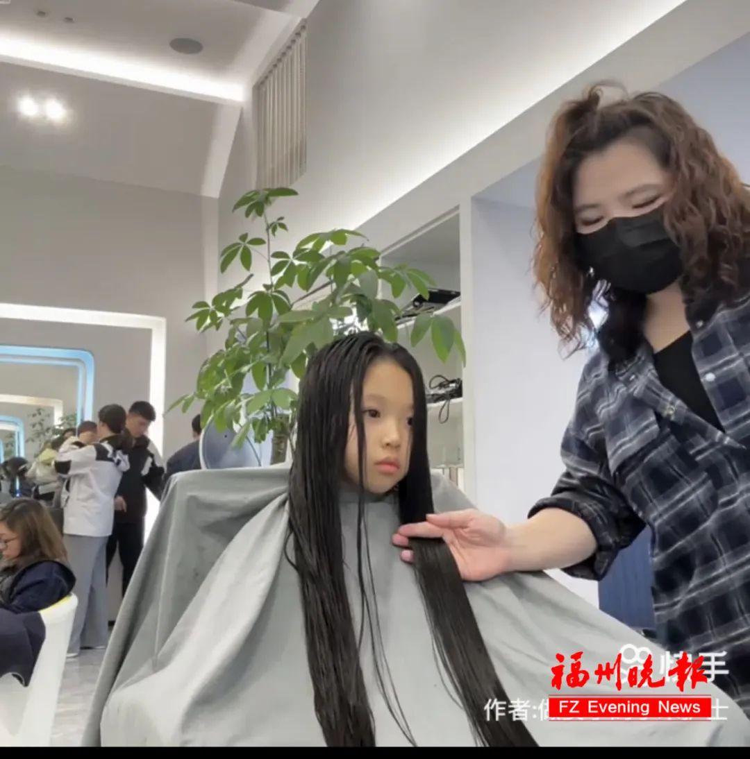 理发店里,剪刀落下时发出清脆的“咔嚓”声。“剪的时候,她还笑嘻嘻的,剪下来了,我就看着泪水在打转。”宋苏永说,女儿憋着泪花的模样让她也很触动,雨熙还问她,“妈妈我做了好事,是不是不能哭,可我好难过,以后没有人说我的头发又黑又长又漂亮了”。
