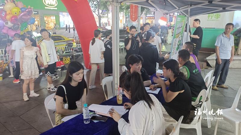 就业夜市现场设置了公共就业服务专区,安排就业服务志愿者,为求职人员免费提供职业介绍、职业指导、职业培训、政策咨询等服务。同时,就业夜市依托新媒体,在“福州人社”微信公众号发布就业夜市信息,让无法到场的求职者扫描信息后面的二维码,查看“福你就业”平台上的企业和岗位信息,实现“指尖上的求职”。