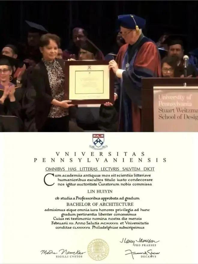2024年5月18日,在宾夕法尼亚大学韦茨曼设计学院的毕业典礼上,宾大正式向林徽因颁发建筑学学士学位,以表彰她作为中国现代建筑先驱的卓越贡献。